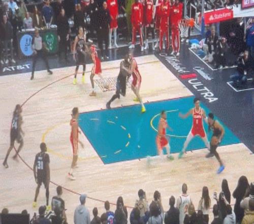 這時(shí)候,全場(chǎng)觀眾都屏住了呼吸。 第一波:托拜厄斯-哈里斯在底線來了一個(gè)后仰跳投。動(dòng)作很帥,可惜力氣大了點(diǎn),球彈筐而出。 第二波:就在大家以為涼了的時(shí)候,活塞中鋒杰倫-杜倫神兵降臨,搶到了進(jìn)攻籃板!此時(shí)他距離籃筐近在咫尺,只要輕輕一補(bǔ)……
