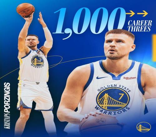此役,波神還創(chuàng)下了紀(jì)錄。波爾津吉斯首節(jié)命中2記3分球,其生涯已投進(jìn)共計(jì)1000記三分,就此創(chuàng)下紀(jì)錄。