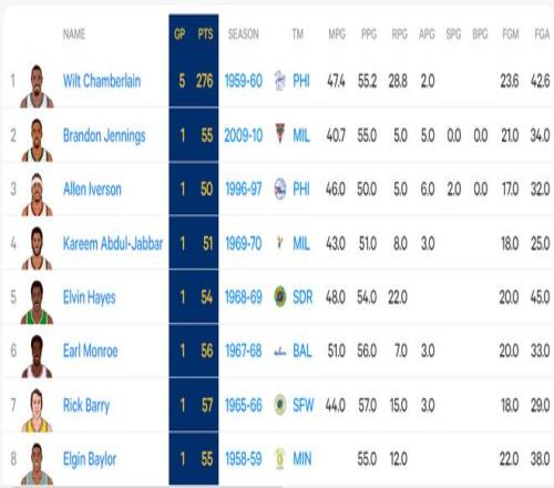 4.新秀拿到三次40+比肩馬拉維奇并列歷史第11位;