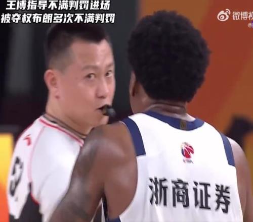 怒了王博不滿布朗被吹犯規(guī)沖進(jìn)場內(nèi),裁判奪權(quán)王博微笑鼓掌離場