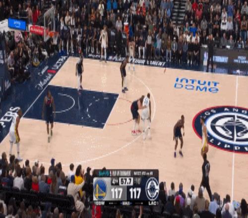快船用罰球追平,但扭頭又是庫里命中了撤步三分球...