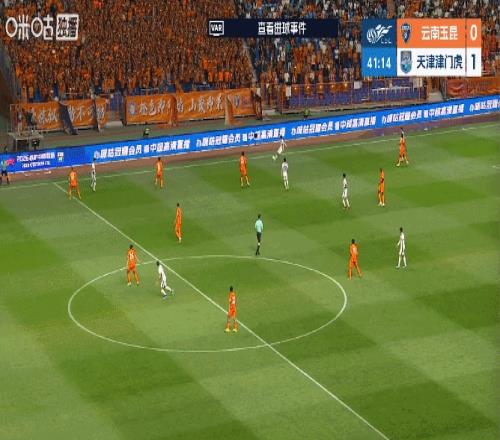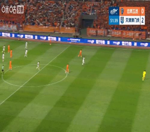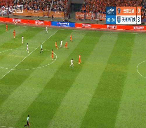上半場,云南玉昆借助高原主場之利,將陣型壓得非常靠上,津門虎也有意識地拖慢比賽節(jié)奏,并多次利用長傳制造反擊機會,而這種戰(zhàn)術也收到了奇效。
