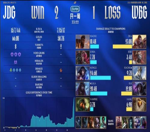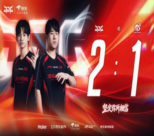 后期WBG已無力防守,JDG一波推進結(jié)束比賽,完成讓一追二。