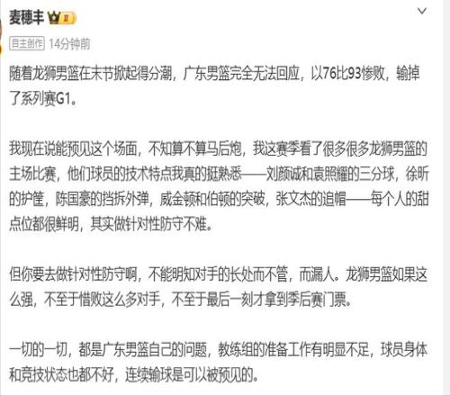 爆冷慘敗廣州17分!廣東輸在哪粵媒京媒一針見血,矛頭直指1人
