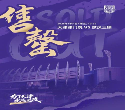 北京時間4月30日,天津津門虎官方發(fā)布公告,本輪對陣武漢三鎮(zhèn)的主隊區(qū)球票已售罄。